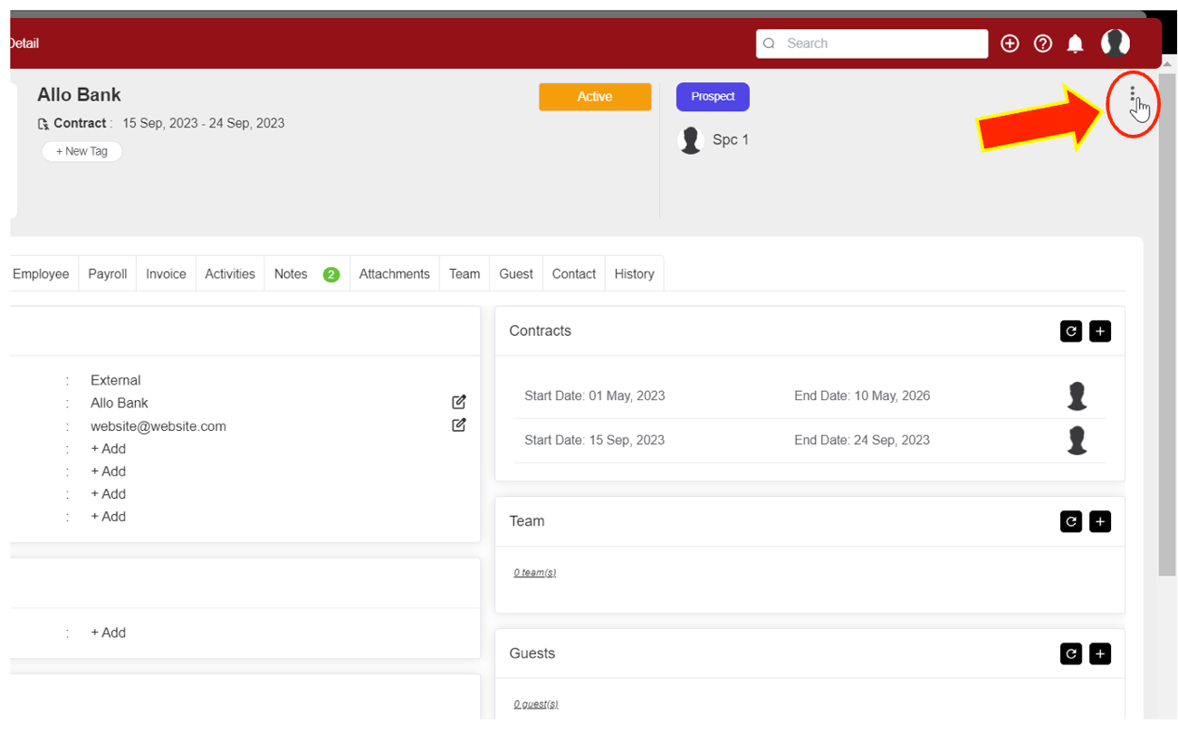 In the "Client Detail" view, click the three dot icon on the right side