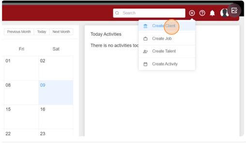 From any page (click here to open SPC), click on the "+" button on the top right corner of your screen and select "Create a client" (Depending on your Agency/Corporate settings).