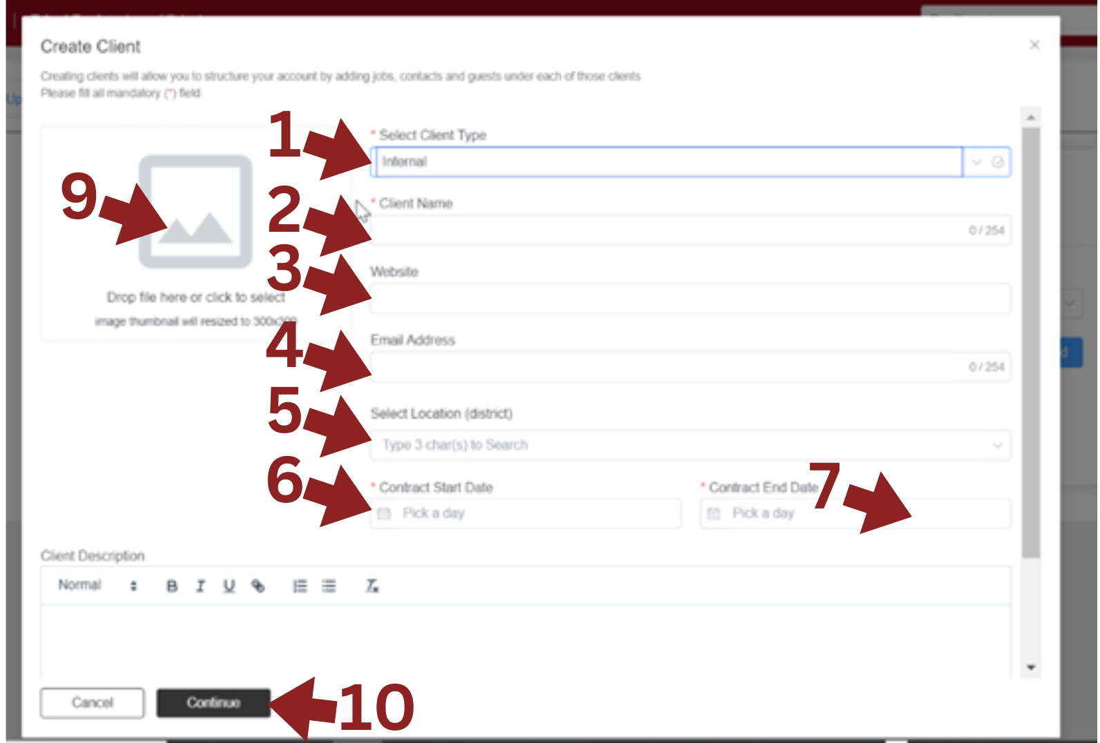 When you create a job (vacancy, job requisition, job listing), you need to attach this newly created position to an Client. This allows you to better structure and organize your jobs under your different organizations.